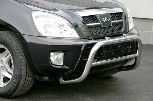Передняя решетка Cherry Tiggo (кенгурятник) – это защитная дуга на бампер из нержавеющей стали диаметром 60 мм.