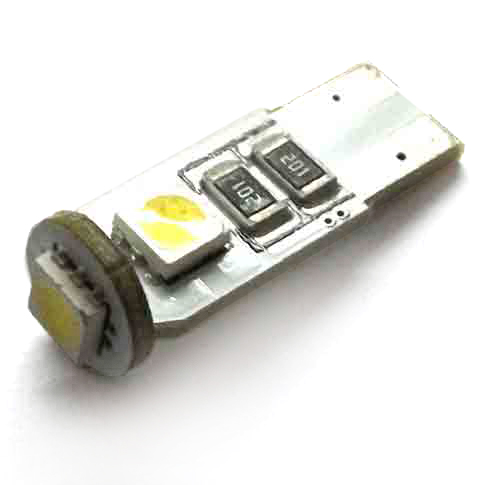 Лампа светодиодная Т10 с обманкой на базе 3 SMD светодиодов обеспечивает простую установку даже на те автомобили, которые обладают бортовым компьютером. Установка осуществляется в габариты, салон автомобиля или в посветку номерного знака.