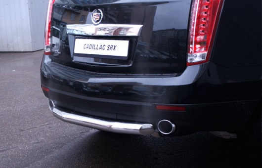 Труба на задний бампер Cadillac SRX защищает задний бампер автомобиля от различных механических повреждений при столкновениях на дороге и неудачных парковках. А кроме этого, защита заднего бампера для Кадиллак SRX — это дополнительная деталь тюнинга.