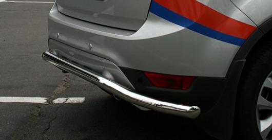 Защита заднего бампера "волна" предназначена для автомобилей Ford Kuga от 2008 г.в. Вам не придется подгонять защиту под размеры бампера вашего авто. И с монтажом проблем не возникнет: установка защиты заднего бампера производится в штатные отверстия, а значит, необходимость сверлить кузов отпадает.