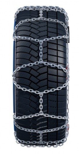 Размер звена — 16 мм. Цепь на шины имеет ассиметричный ромбовидный рисунок. Благодаря такому расположению звеньев дробление льда и снега становится более эффективным, а значит, улучшается сцепление с дорогой.