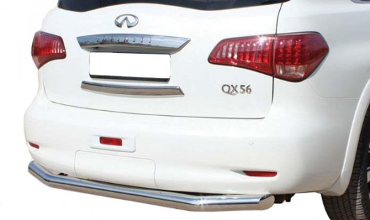 Труба на задний бампер Infiniti QX 56 защищает задний бампер автомобиля от различных механических повреждений при столкновениях на дороге и неудачных парковках. А кроме этого, защита заднего бампера для Инфинити QX 56 — это дополнительная деталь тюнинга.