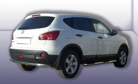 Защита заднего бампера труба предназначена для автомобилей Nissan Qashqai от 2007 г.в. Вам не придется подгонять защиту под размеры бампера вашего авто. И с монтажом проблем не возникнет: установка защиты заднего бампера производится в штатные отверстия, а значит, необходимость сверлить кузов отпадает.
