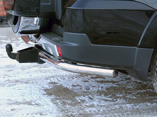 Защита заднего бампера для Mitsubishi Pajero IV – это защитные уголки на бампер из нержавеющей стали диаметром 76 мм.