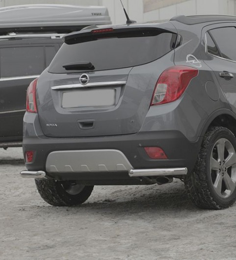 Защита заднего бампера для Opel Mokka – это защитные уголки на бампер из нержавеющей стали диаметром 42 мм.