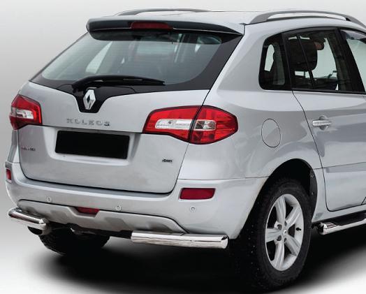 Защита заднего бампера для Renault Koleos – это защитные уголки на бампер из нержавеющей стали диаметром 60 мм.