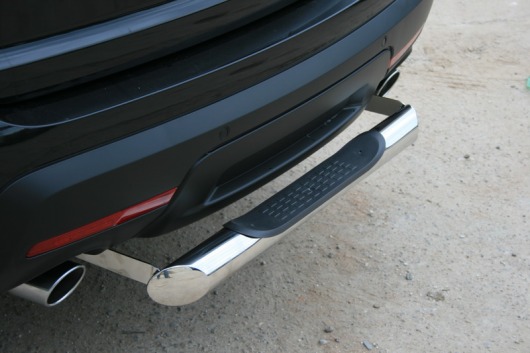 Труба на задний бампер Mitsubishi ASX защищает задний бампер автомобиля от различных механических повреждений при столкновениях на дороге и неудачных парковках. А кроме этого, ступень на задний бампер для Митсубиси АСХ — это еще и деталь тюнинга, а также дополнительная подножка для авто. Красиво и практично.