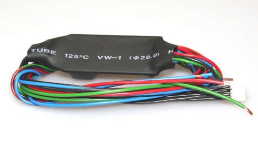 Черный и красный провод с внешней платы можно подключить к источнику питания 9…30 вольт, синий – выход дополнительного канала, зеленый и оранжевый – тревожный вход. Допускается подключение к внешнему источнику питания одновременно со вставленными батареями. Внешнее питание обязательно подключать через предохранитель номиналом 1А.