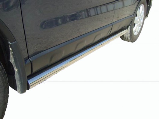 Пороги на Honda CR-V – это боковые подножки из нержавеющей стали диаметром 60 мм, которые позволяют более комфортно входить и выходить из салона автомобиля. Подножки Honda CR-V очень прочные, надежные и долговечные: они не боятся коррозии, сколов и царапин и выдерживают большие нагрузки.