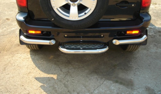 Защита заднего бампера для Chery Tiggo – это труба на бампер ступень с листом из нержавеющей стали диаметром 42 мм.