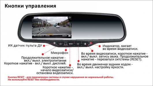 • Помимо того, что все функции и настройки управляются с пульта, дополнительно основными функциями можно управлять кнопками непосредственно на панели зеркала.