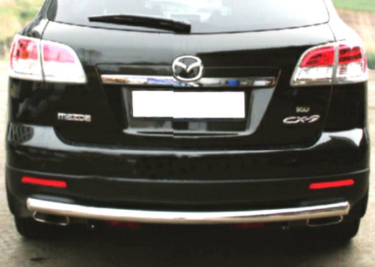 Защита заднего бампера труба предназначена для автомобилей Mazda CX-9 от 2013 г.в. Вам не придется подгонять защиту под размеры бампера вашего авто. И с монтажом проблем не возникнет: установка защиты заднего бампера производится в штатные отверстия, а значит, необходимость сверлить кузов отпадает.