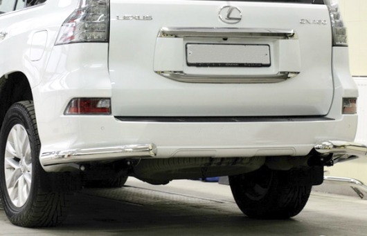 Защита заднего бампера для Lexus GX460 – это защитные уголки на бампер из нержавеющей стали диаметром 76 мм.