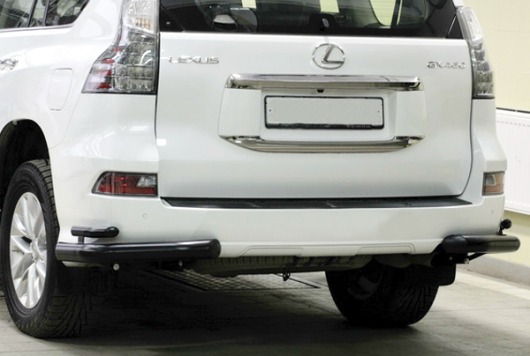 Защита заднего бампера для Lexus GX460 – это черные двойные уголки на бампер из нержавеющей стали диаметром 76/42 мм.