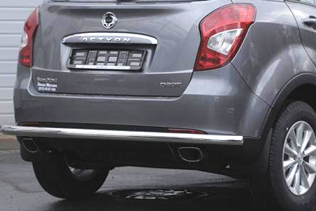 Труба на задний бампер SsangYong Actyon защищает задний бампер автомобиля от различных механических повреждений при столкновениях на дороге и неудачных парковках. А кроме этого, защита заднего бампера для Санг Енг Актион — это дополнительная деталь тюнинга.