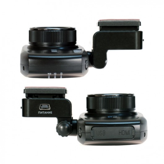 В комплектации устройства есть съемный поворотный кронштейн, оснащенный разъемом питания, и провод адаптера питания длиной 4 метра (позволяет провести скрытую проводку под обшивкой салона авто).