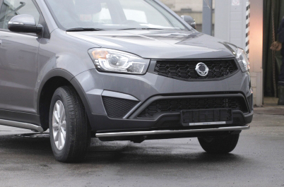 Труба на бампер SsangYong Actyon защищает передний бампер автомобиля от различных механических повреждений при мелких ДТП и неудачных парковках, а также незаменима при езде по бездорожью. А кроме этого, труба на передний бампер Санг Енг Актион смотрится очень стильно и эффектно.