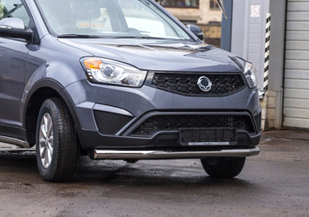 Труба на бампер SsangYong Actyon защищает передний бампер автомобиля от различных механических повреждений при мелких ДТП и неудачных парковках, а также незаменима при езде по бездорожью. А кроме этого, труба на передний бампер Санг Енг Актион смотрится очень стильно и эффектно.