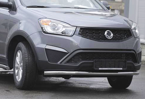 Труба на бампер SsangYong Actyon защищает передний бампер автомобиля от различных механических повреждений при мелких ДТП и неудачных парковках, а также незаменима при езде по бездорожью. А кроме этого, труба на передний бампер Санг Енг Актион смотрится очень стильно и эффектно.