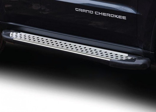Боковые пороги-подножки сделаны специально для автомобилей Jeep Grand Cherokee от 2013 г.в., поэтому устанавливаются достаточно просто и без повреждений корпуса. Помимо этого, алюминиевые пороги с листом для Джип Гранд Чероки смотрятся очень стильно и эффектно. Они добавят вашему авто еще больше солидности и внушительности.