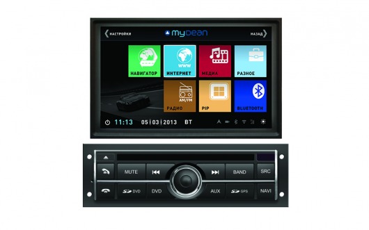 Штатная голова сделана на базе двухъядерного процессора частотой 1 Ггц семейства ARM Cortex с очень высокой производительностью. На ШГУ MyDean 3094 устанавливается операционная система WinCE 6.0 с полностью русифицированным меню. Сенсорный дисплей диагональю 6,2", с разрешением 800х480 и высокой контрастностью позволяет отлично просматривать фото и видео всех основных форматов, включая видео высокой чёткости HD. Также Вы можете просматривать эфирное телевидение, для этого в штатную голову встроен аналоговый ТВ-тюнер.