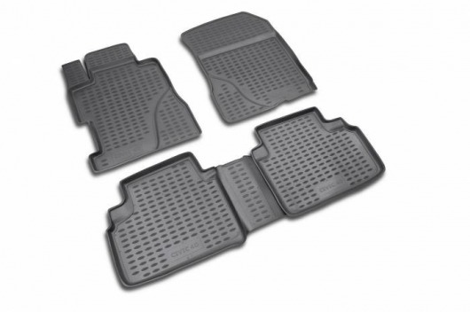 Черные автоковрики в салон Honda Civic 4D не только улучшат внешний вид салона вашего автомобиля, но и надежно уберегут его от пыли, грязи и сырости, а значит, защитят кузов от коррозии. Полиуретановые автоковрики разработаны специально для автомобилей Honda Civic 4D от 2006 г.в.