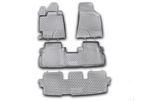 Серые автоковрики в салон Toyota Highlander не только улучшат внешний вид салона вашего автомобиля, но и надежно уберегут его от пыли, грязи и сырости, а значит, защитят кузов от коррозии. Полиуретановые автоковрики разработаны специально для автомобилей Toyota Highlander от 2010 г.в.