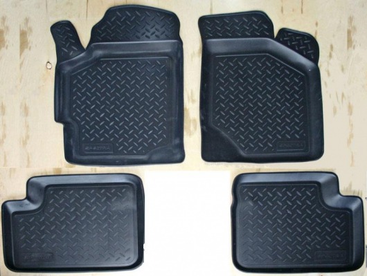 Полиуретановые коврики для автомобиля гладкие, приятные и не пропускают влагу. Черный цвет универсален и подойдет любому авто. В комплекте вы получите 4 коврика в салон автомобиля.