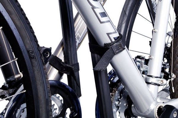 Крепление на фаркоп оборудовано блокирующими замками для дополнительной защиты от кражи. Тросик с замком запирает велосипед на креплении, а другой замок запирает само крепление на автомобиле. Таким образом, вы получаете двойную выгоду: и багажник, и велосипед под надежной защитой от взлома. Установочные платформы для колес оборудованы регулируемыми пластиковыми ремнями, поэтому колеса надежно закреплены на держателе.