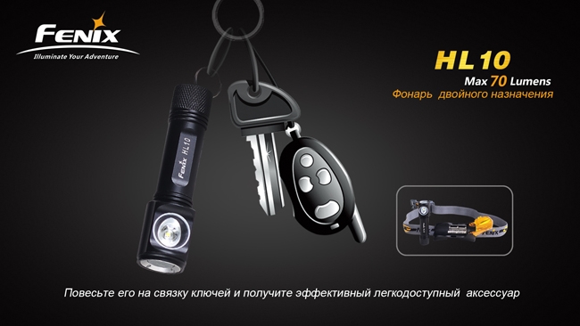 Универсальный фонарь Fenix HL10 – одна из самых интересных моделей в линейке. Уникальность фонарика заключается в том, что он может использоваться и как налобный фонарь, и как фонарь-брелок! Модель очень компактна и работает всего от одного аккумулятора ААА, но при этом выдаёт отличную яркость до 70 люмен! Не будучи рекордсменом по дальности светового луча, фонарь Fenix HL10 благодаря своим достоинствам станет надёжным помощником в самых разных ситуациях.