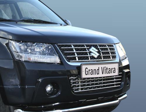 Тюнинг. Хромированная накладка на воздухозаборник Suzuki Grand Vitara, несмотря на небольшой размер, сделает «лицо» вашего автомобиля еще более стильным и привлекательным.