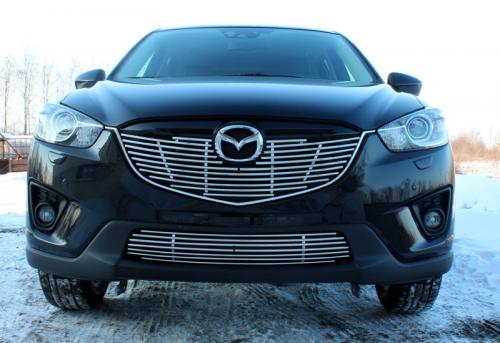 Декоративный элемент воздухозаборника подходит для автомобилей Mazda CX-5 от 2012 г.в. Изделие изготовлено из нержавеющей стали.
