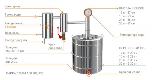 Предельная прочность и долговечность. Аппарат для самогоноварения изготовлен из особой пищевой нержавеющей стали, которая обладает высокой прочностью и 100-процентной устойчивостью к коррозии. При этом во время приготовления сталь не окисляется, благодаря чему продукты не теряют своих вкусовых свойств. Толщина стенок бака составляет 1.5 мм — это гарантия длительного срока службы. При всем этом, самогонный аппарат из нержавейки легко чистить после использования.