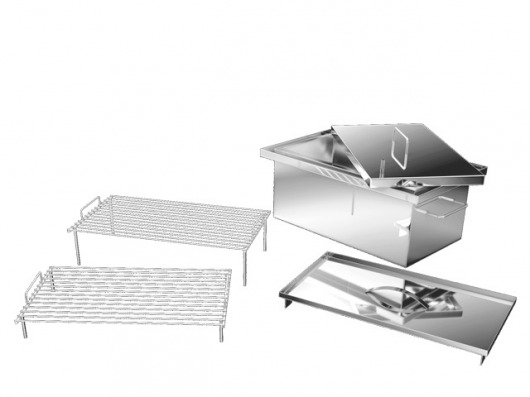 Все элементы коптильни изготовлены из высококачественной пищевой нержавеющей стали (толщина стенок — 1,5 мм). Такая коптильня из нержавейки не боится коррозии и прослужит вам более 10 лет — и это при том, что вы будете часто ее использовать. Кроме того, такую коптильню легко чистить и мыть после использования.