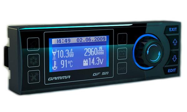Автомобильный бортовой компьютер Gamma GF 511 — это простой и удобный, и в то же время весьма функциональный прибор. В одном небольшом устройстве вы получаете сразу календарь и будильник, маршрутный компьютер, диагностический тестер и аварийный сигнализатор. Вы всегда будете в курсе динамических параметров своего автомобиля и будете точно знать сроки его тех. обслуживания.