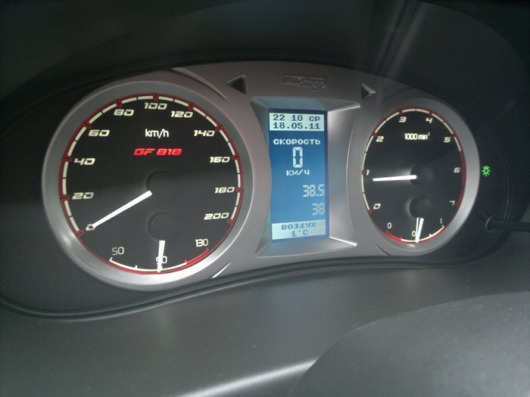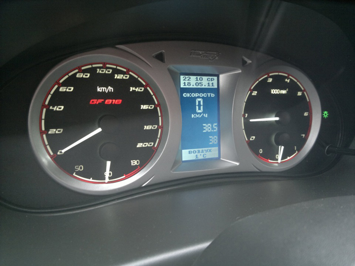 Важная часть GF-818 — бортовой компьютер, управлять которым довольно просто. Для этого нужно воспользоваться специальным подрулевым переключателем, очень удобным и доступным в любой момент. Управлять автомобильным компьютером можно и с помощью поворотного энкодера, расположенного прямо на комбинации приборов.