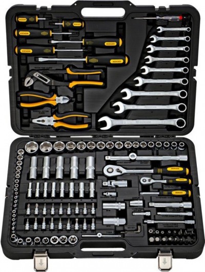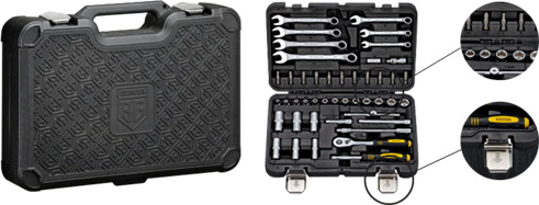 Кроме того, чемодан с инструментом оснащен таким крепежом, благодаря которому все предметы (даже самые мельчайшие – например, биты) остаются на своих местах и при сильной тряске кейса. Но в то же время все инструменты очень легко достаются из пазов. Вам не придется терять время, чтобы достать тот или иной ключ. Просто открыли чемоданчик, нашли необходимый размер гаечного ключа, легко достали и пошли работать. Это очень удобно!