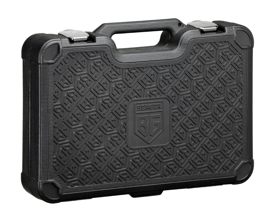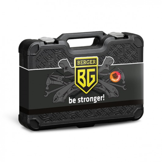 Весь набор инструментов BERGER BG128-1214 находится в оригинальном и стильном кейсе. Чемодан изготовлен из высокотехнологичного пластика с добавлением резины. Такая конструкция делает его очень ударопрочным и стойким к низким температурам.