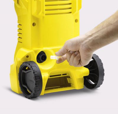 В продуманном комплекте аппарата высокого давления Karcher K 2 Car есть специальный автомобильный шампунь, удобные моющие щетки и насадка для чистки пеной с емкостью для моющего средства. Благодаря этому вы экономите свое время и деньги, ведь вам не придется искать и покупать дополнительные средства для мытья авто. Так, вы можете легко помыть свой автомобиль сразу же после покупки минимойки Керхер.