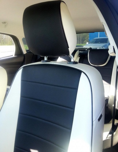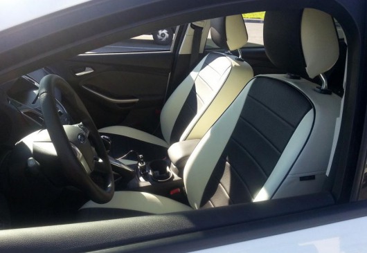 Вопросы и отзывы про Чехлы автомобильные для Ford Focus 3 Trend/Ambiente от 11 г.в. (бело-черные, экокожа)