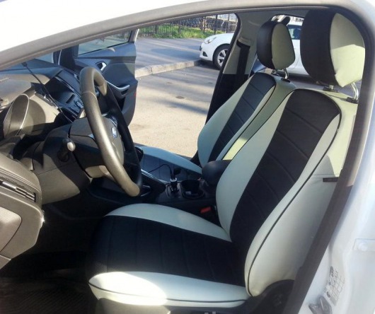 Чехлы автомобильные для Ford Focus 3 Trend/Ambiente от 11 г.в. (бело-черные, экокожа)