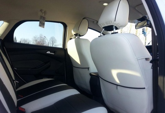 Вопросы и отзывы про Чехлы автомобильные для Ford Focus 3 Trend Sport/Titanium от 11 г.в. (бело-черные, экокожа)