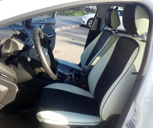 Чехлы автомобильные для Ford Focus 3 Trend Sport/Titanium от 11 г.в. (бело-черные, экокожа)