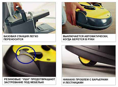 Универсальный пылесос-робот Керхер RC3000 Robo Cleaner мгновенно оценивает обстановку, сканирует площадь уборки, потом – проанализирует степень загрязнения, выбрав нужную программу очистки. После этого «умный» пылесос соберет часть мусора, отвезет на свою базу, очистит мусоросборник и продолжит работу до тех пор, пока ваш дом не станет кристально чистым.