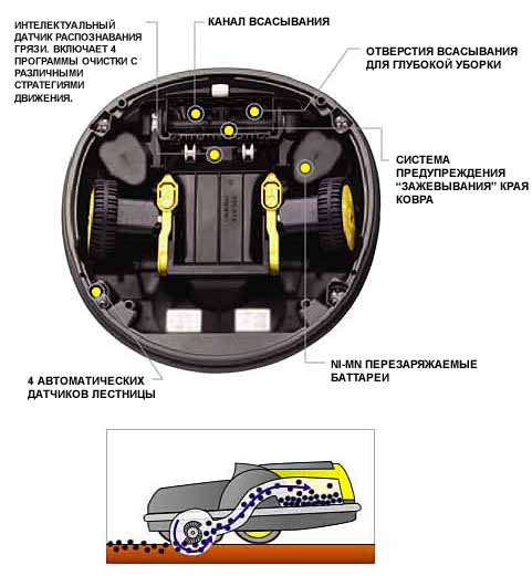 Собственный «интеллект» автоматического пылесоса Karcher RC 3000 позволяет ему выходить из разных ситуаций. Например, если робот-пылесос застревает между ножками стула или наталкивается на какое-либо препятствие, то он автоматически меняет направление своего движения и находит свободный путь.