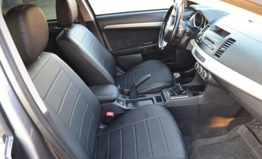 Вопросы и отзывы про Чехлы автомобильные для Mitsubishi Lancer X, седан, от 12 г.в. (черные, экокожа)