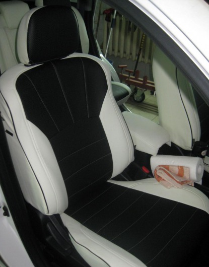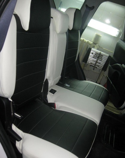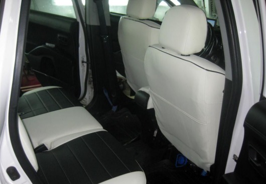 Вопросы и отзывы про Чехлы автомобильные для Mitsubishi Outlander XL от 09 г.в. (бело-черные, экокожа)