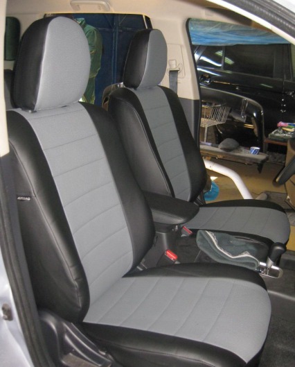 Вопросы и отзывы про Чехлы автомобильные для Mitsubishi Outlander III от 12 г.в. (черно-светло-серые, экокожа)