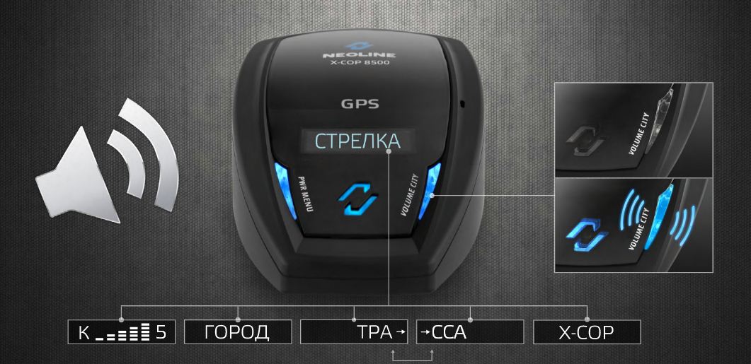 Режим Город/Трасса/X-COP. Эта функция позволяет вам переключаться между 3-мя основными режимами. Вы ставите режим «Город» (скорость от 40 до 70 км/ч) при езде по оживленной дороге. Вы всегда уловите нужный вам сигнал среди разных лишних сигналов. Режим «Трасса» ставите, если вы выезжаете за пределы города или двигаетесь по скоростной трассе. В режиме «X-COP» (при скорости до 40 км/ч) устройство предупреждает вас только индикацией на дисплее.