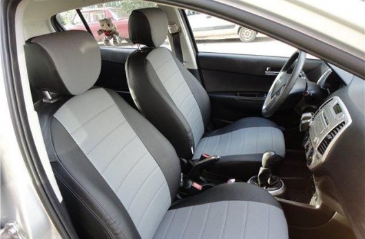 Вопросы и отзывы про Чехлы автомобильные для Hyundai i20 09-12 г.в. (черно-светло-серые, экокожа)